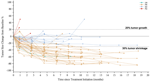 图3.不同受试者随时间变化的肿瘤负荷